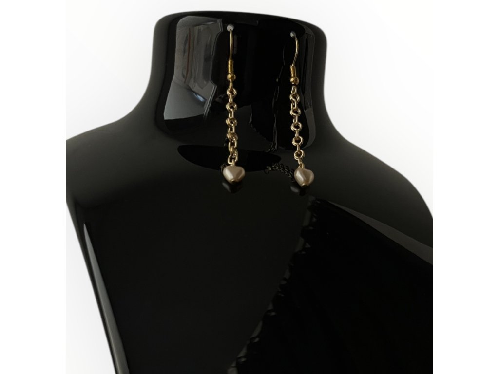 zlaté náušnice s perloťovými světle růžovými srdíčky. Možnost i ve stříbrném barvě.